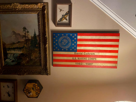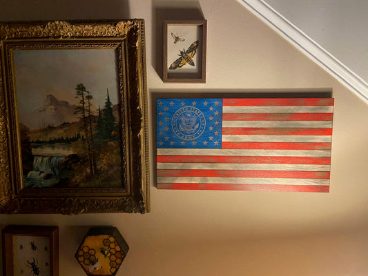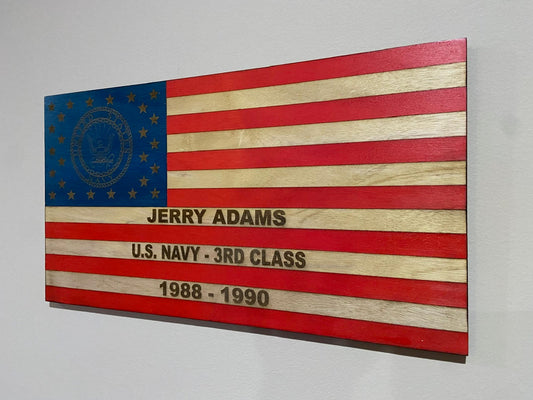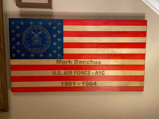 U.S. American Flag - Engraved American Bald Eagle Wooden Flag