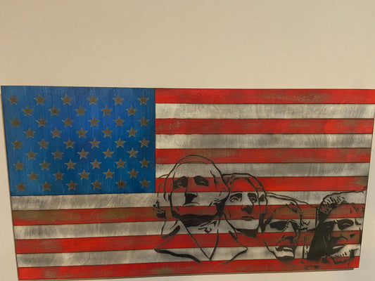 U.S. American Flag - Engraved Mount Rushmore Wooden Flag