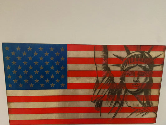 U.S. American Flag - Engraved Statue of Liberty Wooden Flag